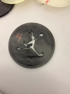 We also noticed that Bugs didn't appear to be centered on the disk. We stuck the part in the lathe, and found that the design was actually centered, but the cavity hole wasn't centered properly.